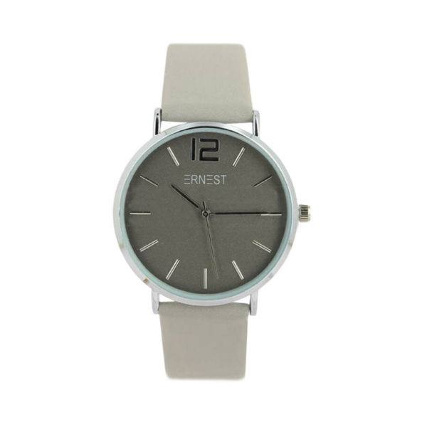 Erg mooi Ernest horloge met een licht gestructureerde band in een grijze kleur. De metalen details rondom de wijzerplaat is in zilver kleur.