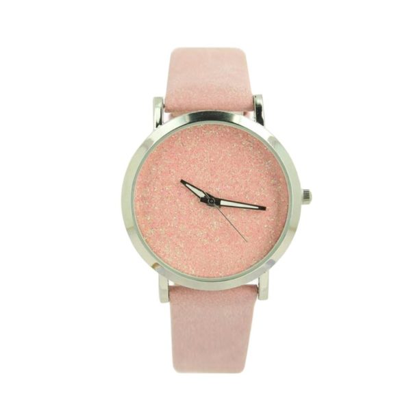 Ernest horloge met een suède look band in roze en kleine glitters op de wijzerplaat. Een erg leuk horloge!