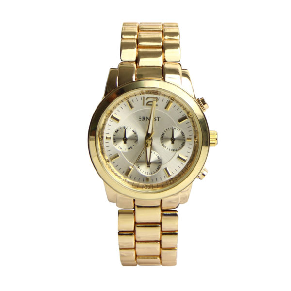 Ernest horloge in goudkleur. De wijzerplaat is zilver, een erg mooie combinatie. Het metaal van dit horloge glanst erg mooi, waardoor het goudkleur erg mooi uitkomt.