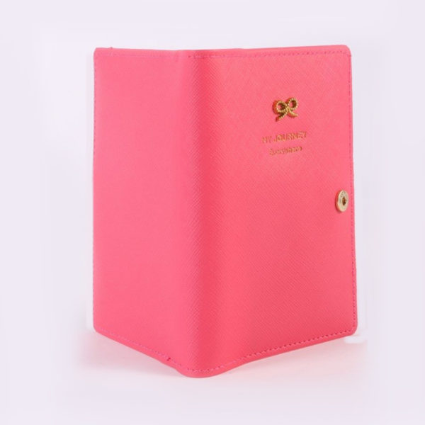 Leuk roze paspoorthoesje met de tekst ‘My Journey’ en met een gouden metalen strikje op de voorkant. Aan de binnenkant is nog ruimte voor pasjes. De paspoorthoes doe je dicht met een drukknoop, waardoor er niets zomaar uitvalt. Ook verkrijgbaar als mintgroene paspoorthoes.